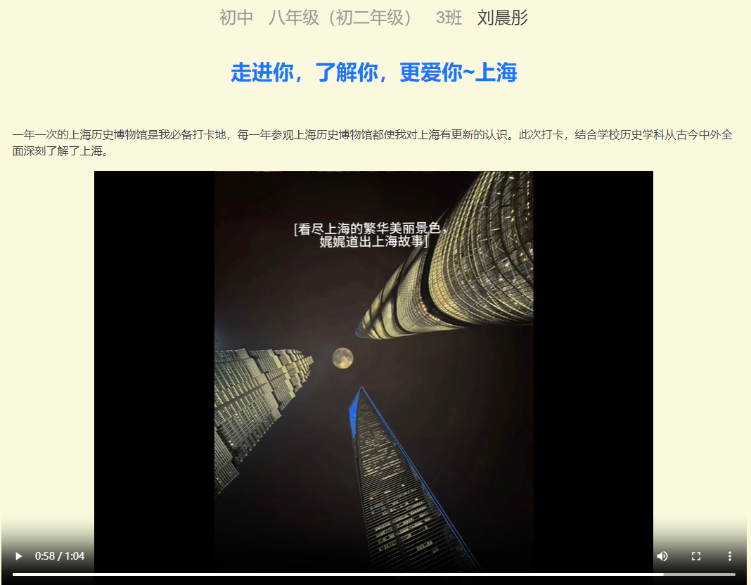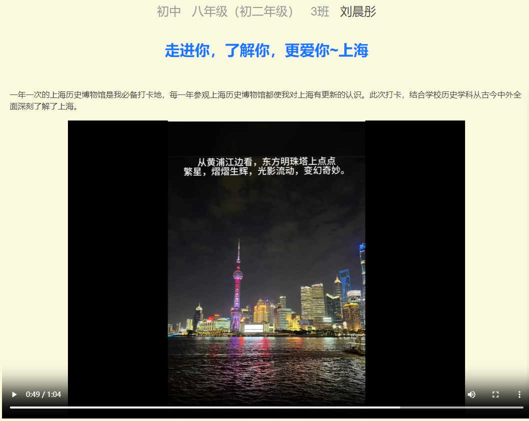 九(3)班刘晨彤 爱上海我讲上海故事 短视频 A等